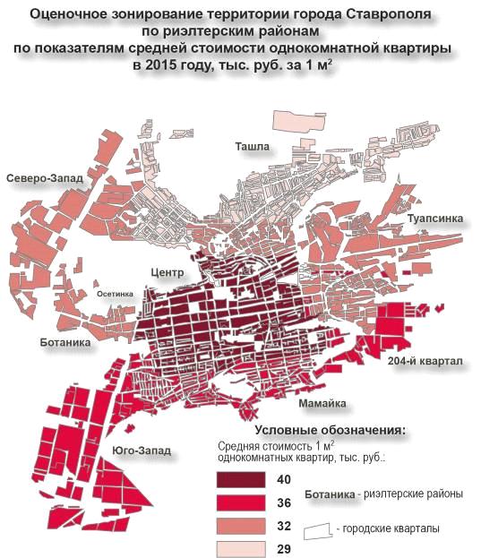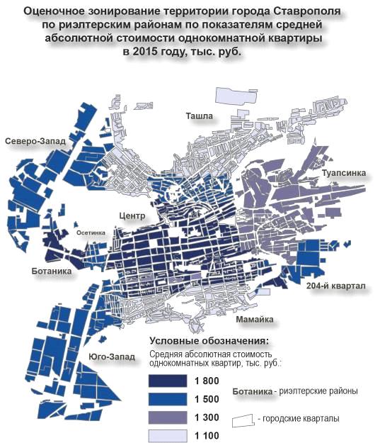 Рис. 3.1.1. Оценочное зонирование территории г. Ставрополя (средняя стоимость квадратного метра однокомнатной квартиры)