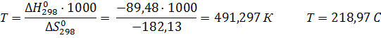 атмосферном давлении, так как энтропия отрицательна. Определим температуру
