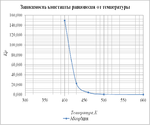 Учитывая термодинамическую вероятность самопроизвольного протекания основной реакции, заключаем, что в интервале температур 300-600 К возможно протекание обратной реакции (десорбции газа), при подведением тепла к системе.
