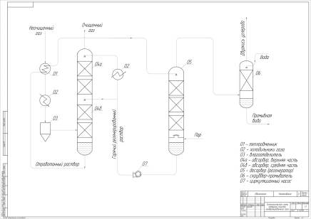 Абсорбционная очистка газа - циклический процесс, на стадии абсорбции диоксид углерода поглощается растворителем, очищенный газ отправляется на последующую переработку, а насыщенный раствор регенерируют, что требует дополнительного расхода энергии. Процесс абсорбции проводим в массообменном аппарате типа насадочной колонны (насадка - кольца Рашига или седловидная насадка Берля).