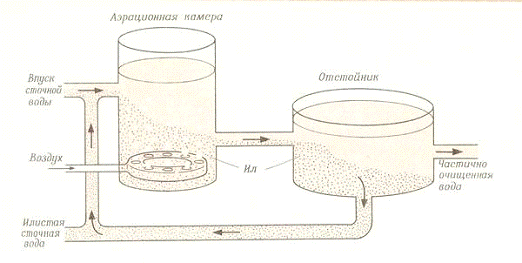 Рис. 1 Схема очистки воды с участием активного ила.