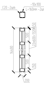 габаритам здания с обеих сторон добавляем по 10м