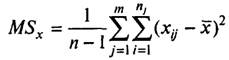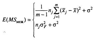 делением сумм квадратов отклонений на соответствующее число степеней свободы