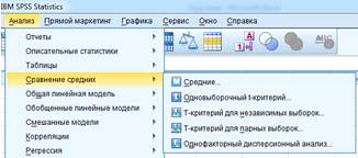В окне “данные” закажем однофакторный дисперсионный анализ с помощью меню «Анализ» Сравнение средних