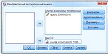 дисперсионный анализ” выделим зависимую переменную и внесем ее в “список