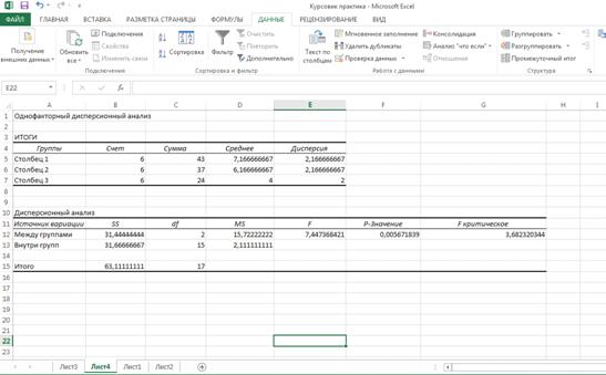 дисперсионный анализ для проведения дисперсионного анализа данных (Рис.7).