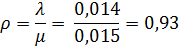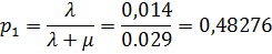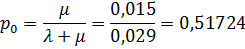Имеется СМО вида M | M | 1 | 0 с интенсивностью обслуживания µ = 0,015, в которую поступает простейший поток заявок с параметром λ = 0,014.
