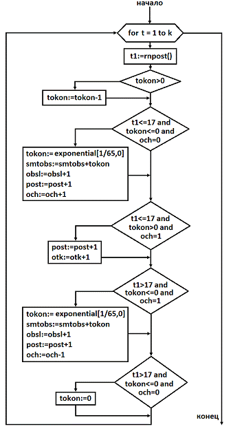 Рисунок 3.1 - Блок-схема программы для моделирования M | M | 1 | 0.