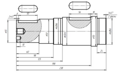 Диаметры остальных участков вала находят последовательным изменением предыдущего участка на 2…5 мм.