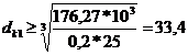 округляем до dk1=35 мм;