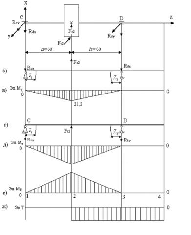 нагруженным участкам вала в вертикальной плоскости XZ: