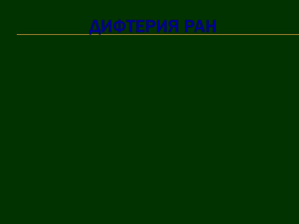 2)Клинические признаки при дифтерийной инфекции ран вначале не патогномоничны. Грануляции становятся вялыми, приобретают серо-желтую окраску. Появляется склонность к образованию корок.