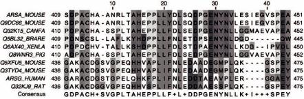 Более информативным способом визуализации результатов множественного выравнивания является генерация компьютером консенсусной строки, в которой изображаются те аминокислоты, которые наиболее часто встречаются в соответствующих столбцах данного выравнивания. Пример такого консенсуса – нижняя строка ("Consensus") на рисунке 21.