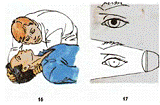 реакция зрачков на свет (сужение зрачка при освещении глаза).