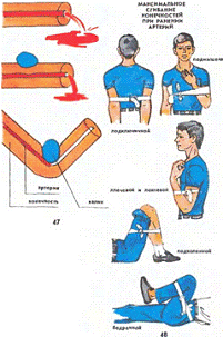расположенном выше раны (в результате чего сдавливается магистральный сосуд), и