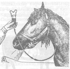 Лекарственные растворы в клинической практике применяют при заболеваниях легких, например гангрене и др. Вводят их при помощи иглы. Место укола - нижняя часть шеи или область трахеи ближе к грудной стенке (рис.2 см. Приложение 1). Волосяной покров выстригают и дезинфицируют настойкой йода, спиртом и др. Берут стерильную иглу и вводят между кольцами в трахею. Затем наливают в шприц или воронку нужное количество раствора лекарственного вещества температуры тела животного. Убедившись, что раствор хорошо поступает, канюлю с резиновой трубкой, надетой на воронку или шприц, поднимают до затылочной стороны головы или выше уровня тела животного. При беспокойстве животного поступают так же, как при введении дезинфицирующего раствора через зонд. Животному в лежачем положении можно вводить лекарственный раствор в правое и левое легкое. Раствор лекарственного вещества будет проникать в то легкое, на какой стороне животное лежит.