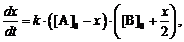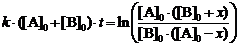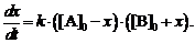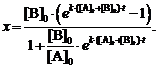результате реакции, т. е. полагая x = [B] - [B]0, и