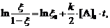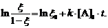 Если экспериментально получена кинетическая кривая автокаталитической реакции, следующей уравнению (2), то для вычисления константы скорости k пользуемся уравнениями (6 ,7).