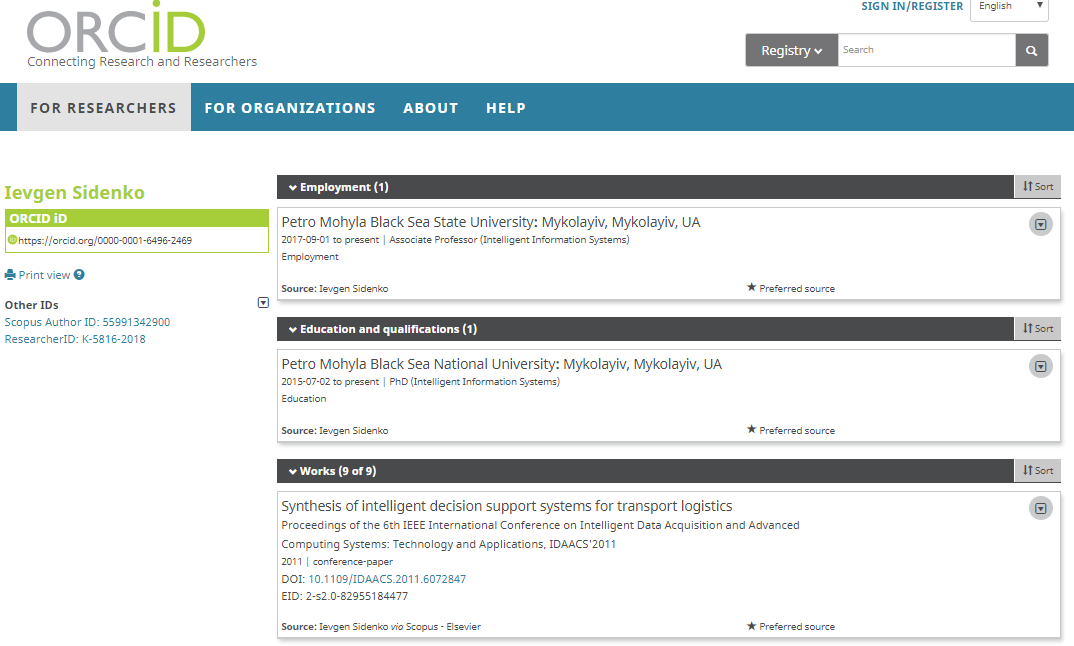 Рис. 2 – Профіль ORCID автора теми дослідження