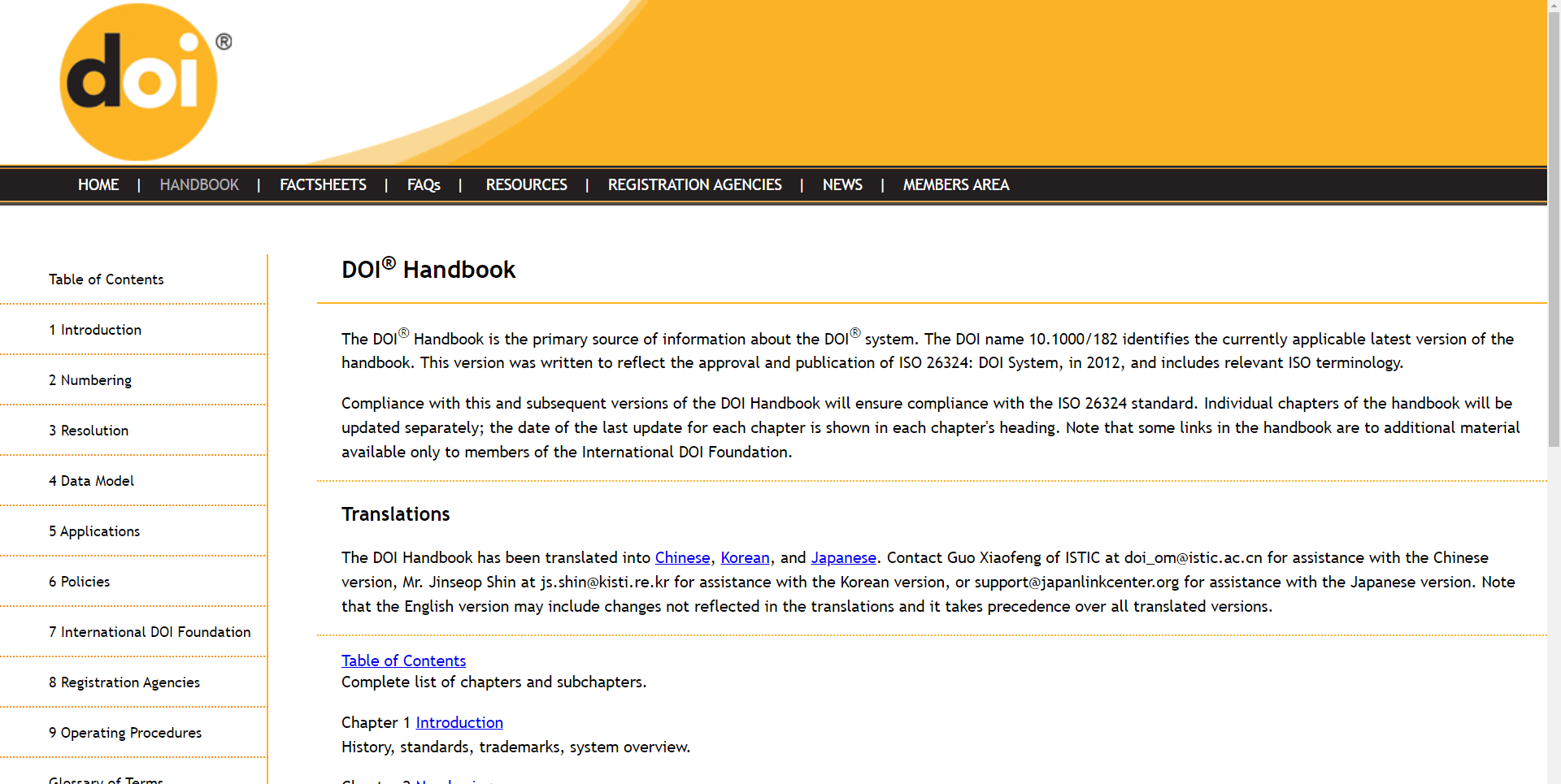 DOI (digital object identifier) – це серійний номер, який використовують для постійної та унікальної ідентифікації об'єктів інтелектуальної власності будь-якого типу., стандартизирований Міжнародною організацією зі стандартизації (ISO).