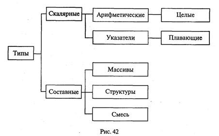 Концепція типів даних є найважливішою стороною будь-якої мови програмування. Особливість Паскаля полягає у великій різноманітності типів. Схема типів даних для мови Сі++ представлена на мал. 1.