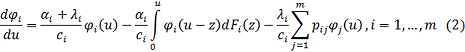 В работе [8] получена система интегро-дифференциальных уравнений для вероятностей небанкротства страховой компании: