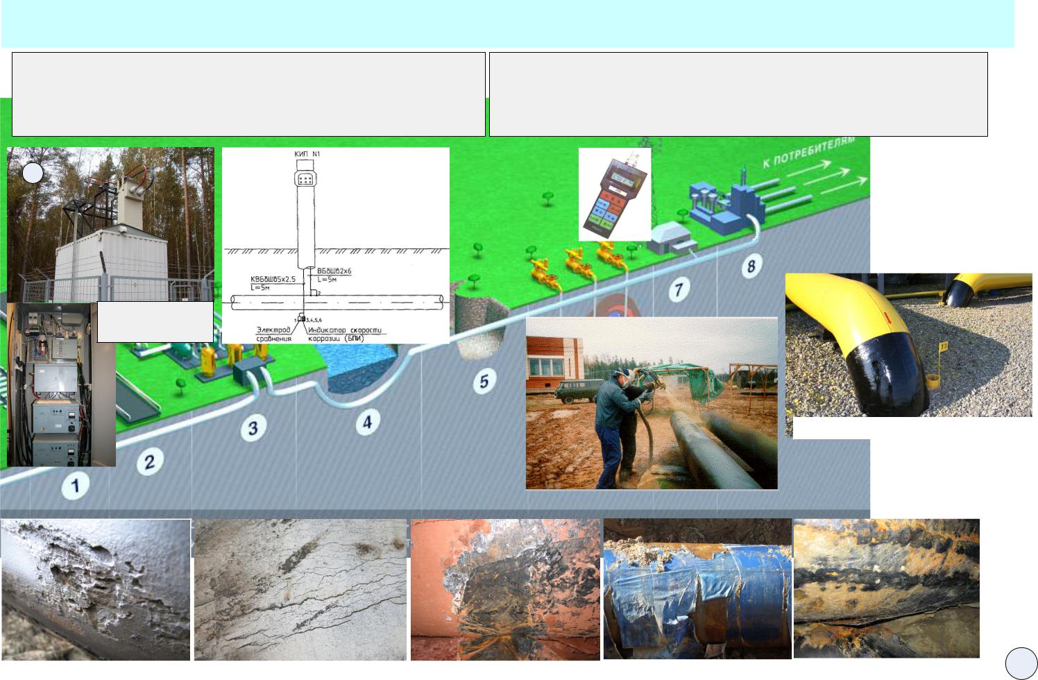 Изоляционные покрытия не гарантируют необходимой защиты подземных трубопроводов от коррозии. Практика показывает, что даже тщательно выполненное изоляционное покрытие в процессе эксплуатации стареет: теряет адгезионные свойства и водоустойчивость. Случаются повреждения изоляции при засыпке трубопроводов, при воздействии корней растений. По названным причинам защита трубопроводов от подземной коррозии осуществляется комплексно: защитными покрытиями и средствами электрохимической защиты (ЭХЗ).