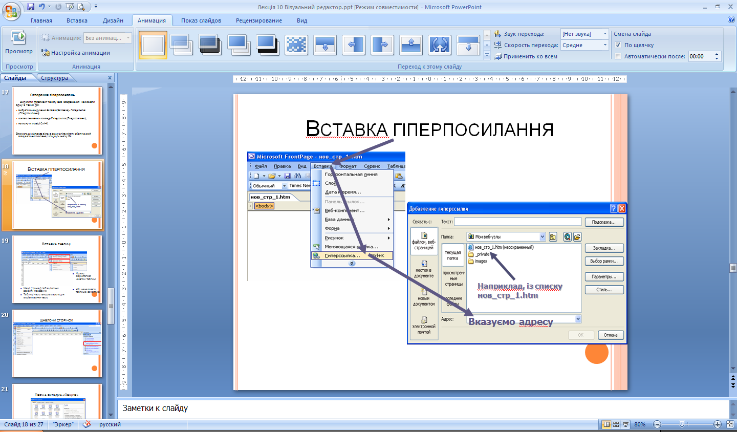 Рис. 6. Діалогове вікно для створення гіперпосилань