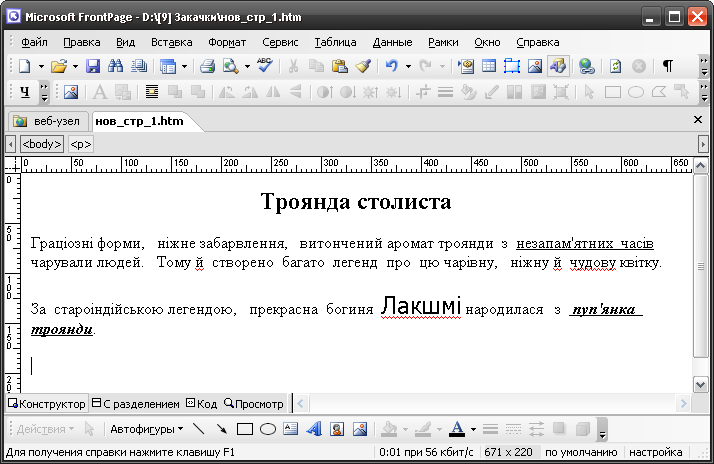 Введіть наведений нижче текст у вікно веб-сторінки в режимі Конструктор (Конструктор) (рис. 7),