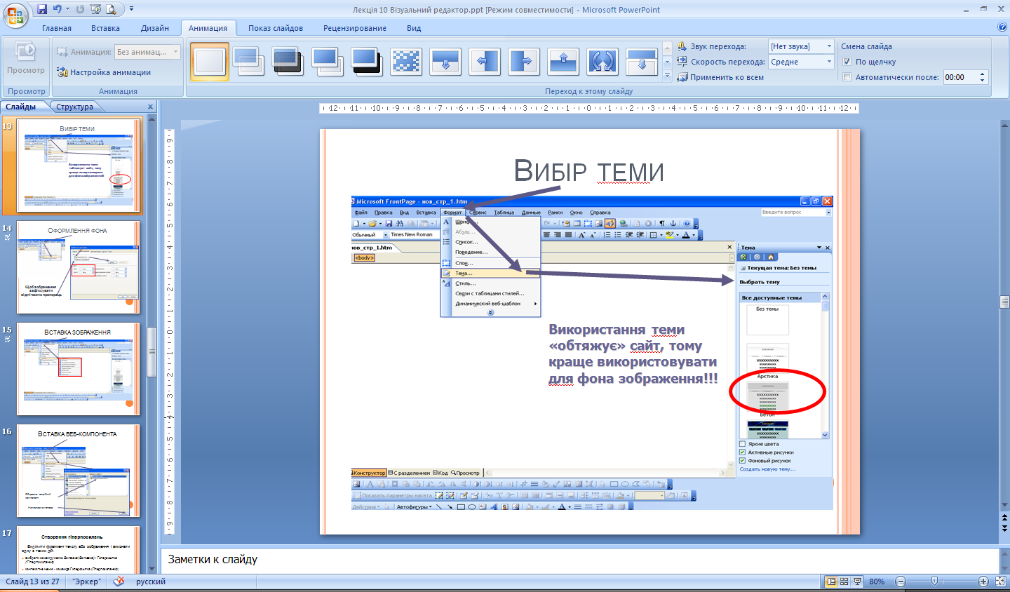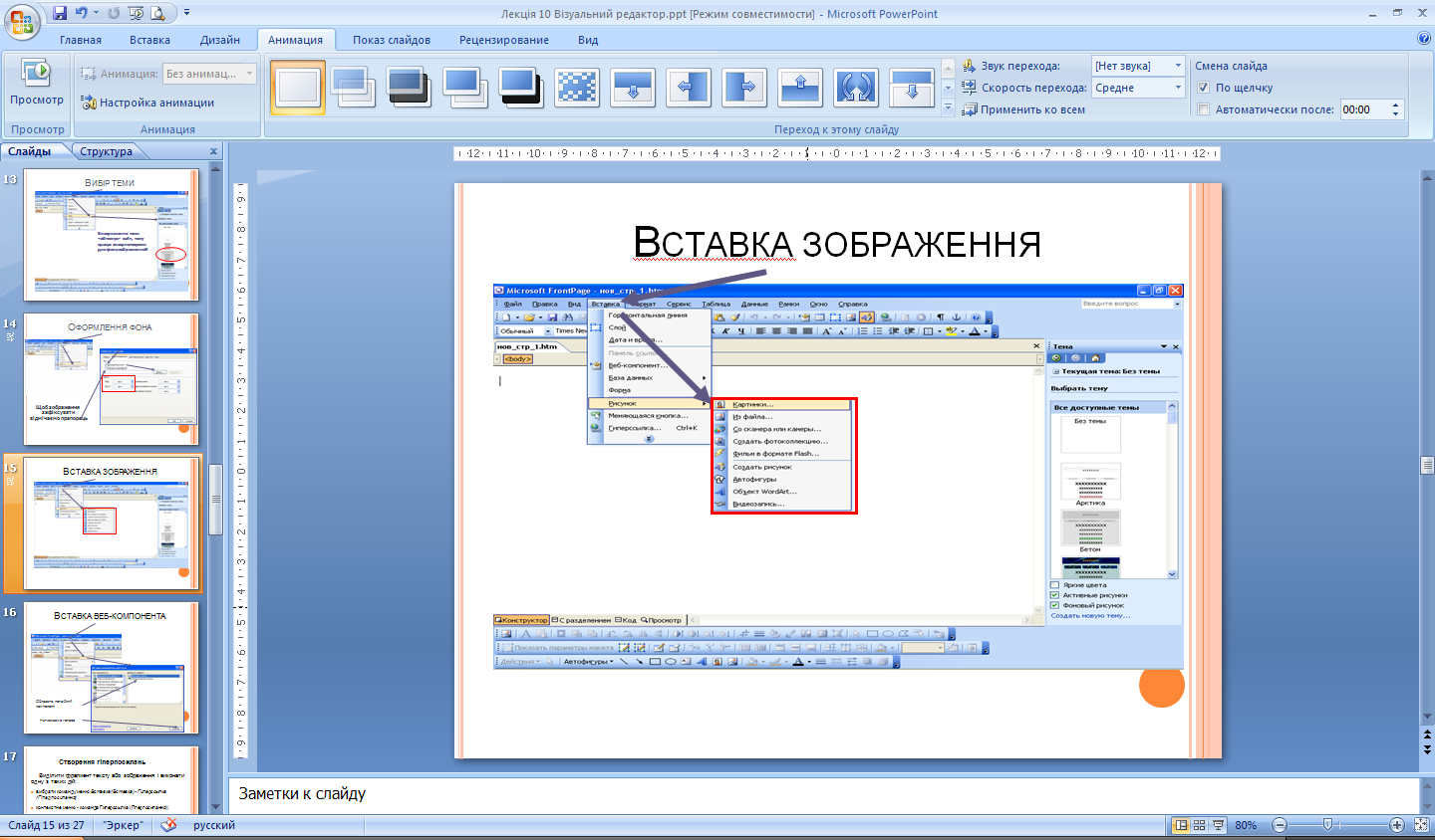 У діалоговому вікні Шаблоны страниц (Шаблони сторінок), що відкриється, вибрати зі списку шаблон (рис. 10).