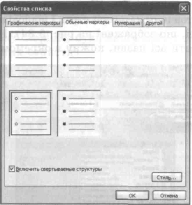 Виділіть один з елементів списку другого рівня та виберіть команду Список (Список) у меню Формат (Формат) або команду Свойства списка (Властивості списку) в контекстному меню елемента. У діалоговому вікні властивостей списку встановіть прапорець Включить свертываемые структуры (Увімкнути структури, що згортаються) (рис. 16) і клацніть ОК.