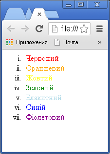 Приклад 2. Нумерований список, в якому для позначення елементів використовують малі римські цифри