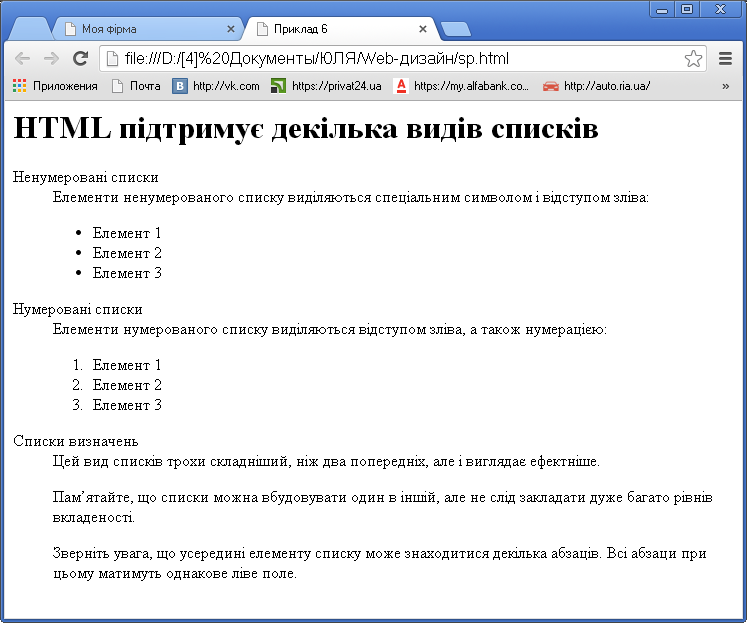 <DD>Елементи| нумерованого списку виділяються відступом зліва, а
