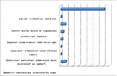 Итак, единственное, с чем оппозиционно настроенные субъекты справляются, это с критикой политических оппонентов (рис 7). Без вышеназванных необходимых сегодня практически реализуемых действий по контролю над властной элитой и поставке новых идей и кадров, эта критика остается лишь демагогией, направленной на собственный пиар, и не может способствовать модернизации политической системы России.