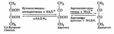 бутиленгликольдегидрогеназы и НАД-Н2 восстанавливается в 2-3-бутиленгликоль по