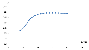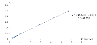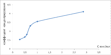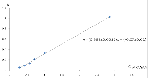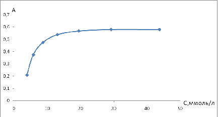 Была определена суммарная оптимальная концентрация реагентов 20 ммоль/л, при которой оптическая плотность достигала максимума.