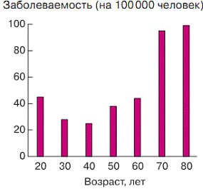 Рис. 5. Заболеваемость эпилепсией в России в различных возрастных группах (2013 г.).