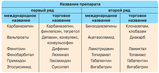 Таблица 4. Противоэпилептические препараты, применяющиеся в России