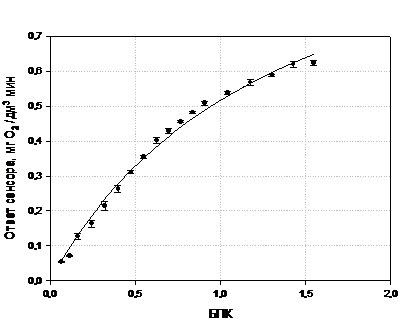 зависимости ответа сенсора от БПК субстрата с помощью уравнения Михаэлиса -