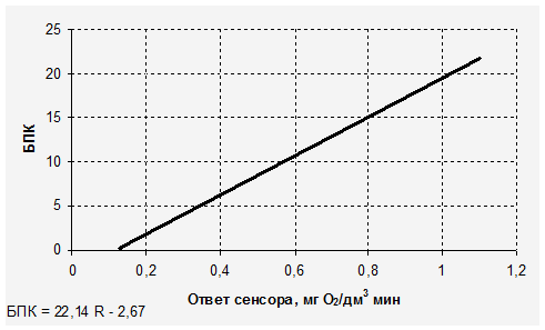 грудуировку в коордринатах ответ сенсора - БПК. Пересчет проводили по формуле: