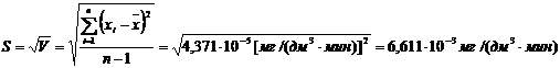 Чтобы оценить случайные погрешности анализа рассчитаем среднее значение и характеризующие воспроизводимость дисперсию, стандартное отклонение и отностительное стандартное отклонение.