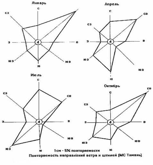 Согласно климатическому районированию по СНиП 23-01-99* участок работ относится к району III Б, для которого характерны следующие природно-климатические условия: мягкая, почти безморозная зима и жаркое, сухое лето, большая интенсивность солнечной радиации, небольшой снежный покров [4]. Характеристика климата приводится на основании данных метеостанции Тамань. Средняя, минимальная и максимальная температура воздуха по месяцам за многолетний период приведена в таб. 1.