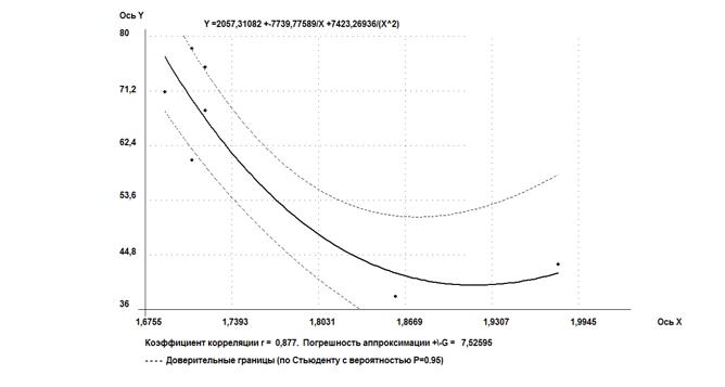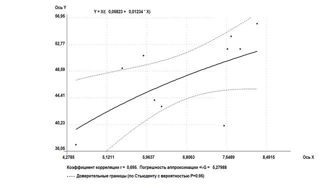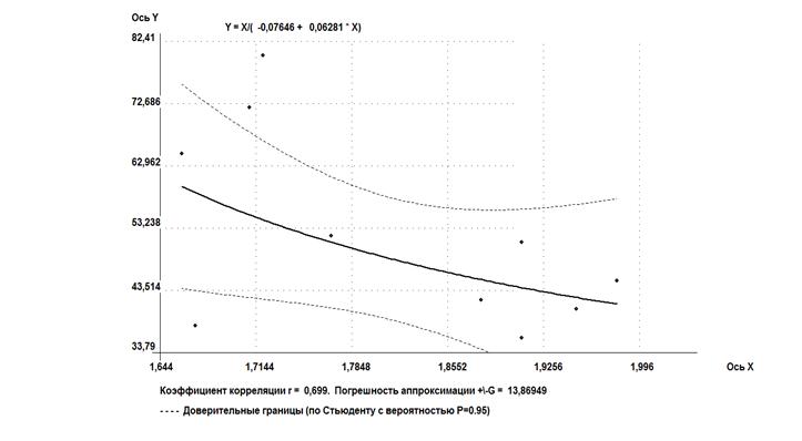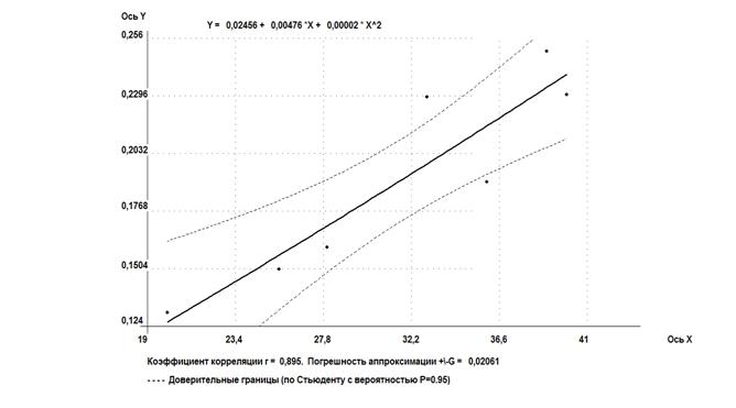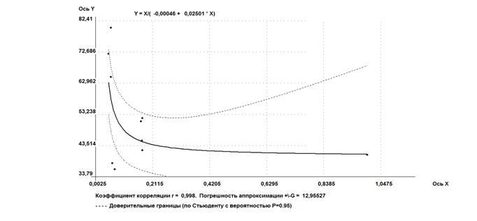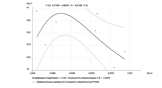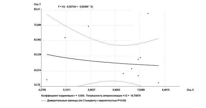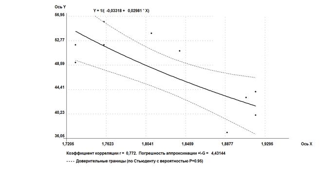 Было установлено, что зависимость влажности на границе текучести от давления набухания - от высокой до весьма высокой, ввиду разнородности и возможно недостаточной представительности выборки.