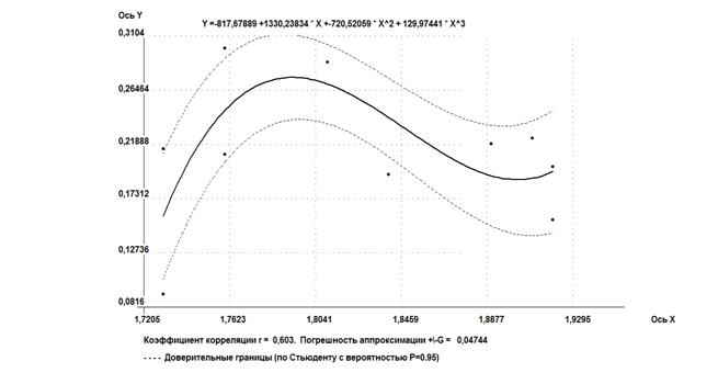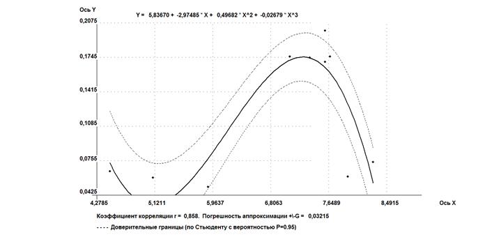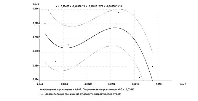 Программа позволяет подбирать регрессионные кривые до третьего порядка, выполнять расчеты по поиску множественной корреляции до трех переменныхи строить автокорреляционные кривые. В программе заложен расчет 11 функций первого порядка 9 функций второго порядка и 1 уравнение третьего порядка. По сравнению с профессиональными программами по статистике, данная программа сразу просчитывает все уравнения и пользователь может подобрать лучшую функцию не задумываясь о ее виде [15].
