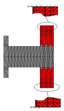 Рисунок 16 - Резьба после деформации при нагрузке заданной фронтально,