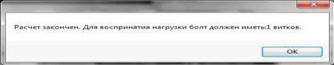 «Расчет закончен. Для восприятия нагрузки болт должен иметь N витков.»
