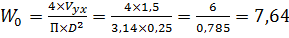 W0- скорость выхода газо-воздушной смеси, м/с;