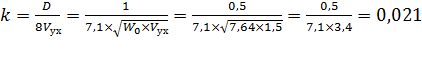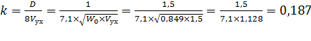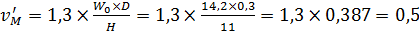 где d - безразмерный коэффициент, при 0,5 < v'м < 2, d=11,4 v'м d=11,4.