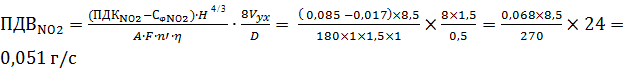 0,085 мг/м3, следовательно, необходим расчет ПДВ.