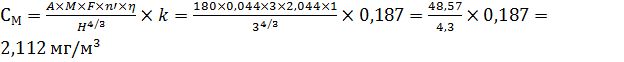 .2 Определение максимальных значений приземных концентраций загрязняющих